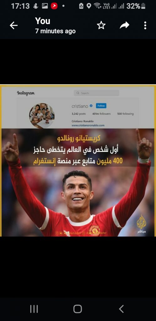 رونالدو أول شخص يتجاوز متابعيه 400 مليون على إنستغرام