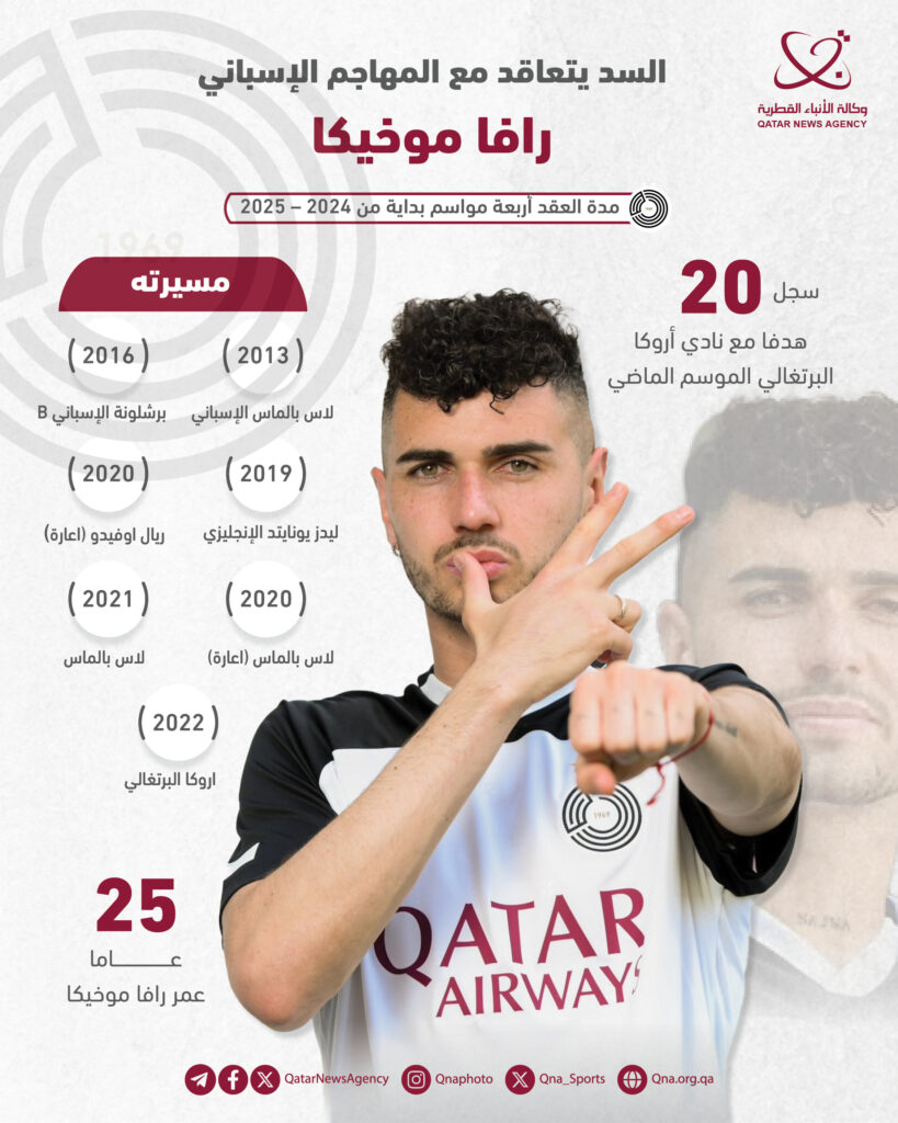 الدوحة: أعلن نادي السد، اليوم، التعاقد مع المهاجم الإسباني رافا موخيكا للانضمام للفريق الأول لكرة القدم لمدة أربعة مواسم.